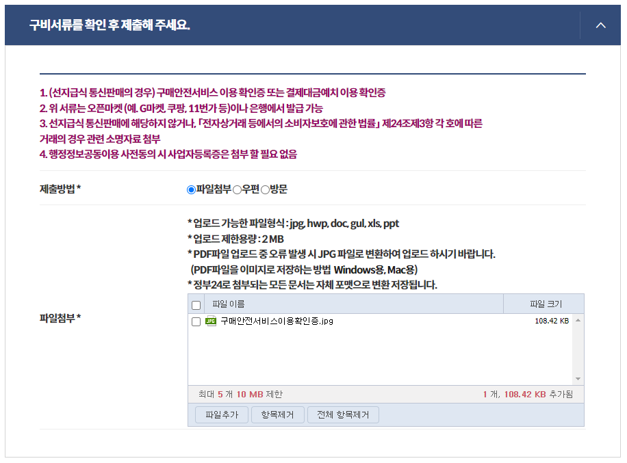 구매안전서비스 이용 확인증 첨부