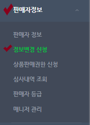 2. 좌측 메뉴에서 판매자정보 -> 정보변경 신청 클릭