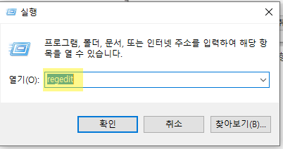 2. regedit 입력