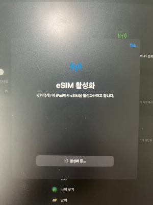 - 개통신청이 완료되면 아이패드에서 eSIM 활성화 요청 팝업이 노출되고, 수락을 터치하면 설정이 완료 된다.