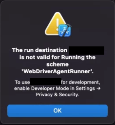 * Xcode 14.0이상 iOS 16.0 이상일 때 WebDriverAgnet 아래 방법대로 진행.