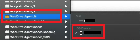 - [configuration dialog]-[WebDriverAgentLib]-[ios Devices]-[▶] 선택