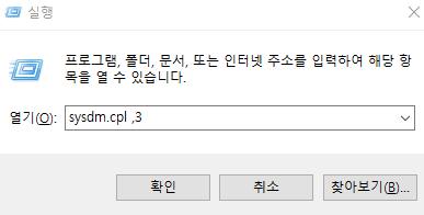 2. sysdm.cpl ,3 입력하고 엔터