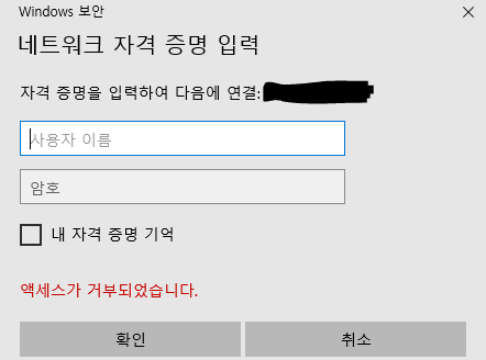 2. samba서버에 등록 된 아이디 패스워드 입력