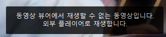 먼저 PC카톡에서 영상을 재생하면 위와같이 뷰어에서 재생할 수 없는 동영상이라는 문구가 노출된다.