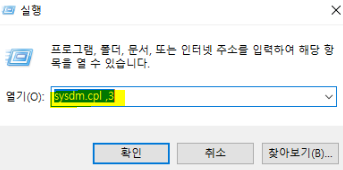 6. 실행 -> sysdm.cpl ,3 입력해서 시스템 속성창 실행