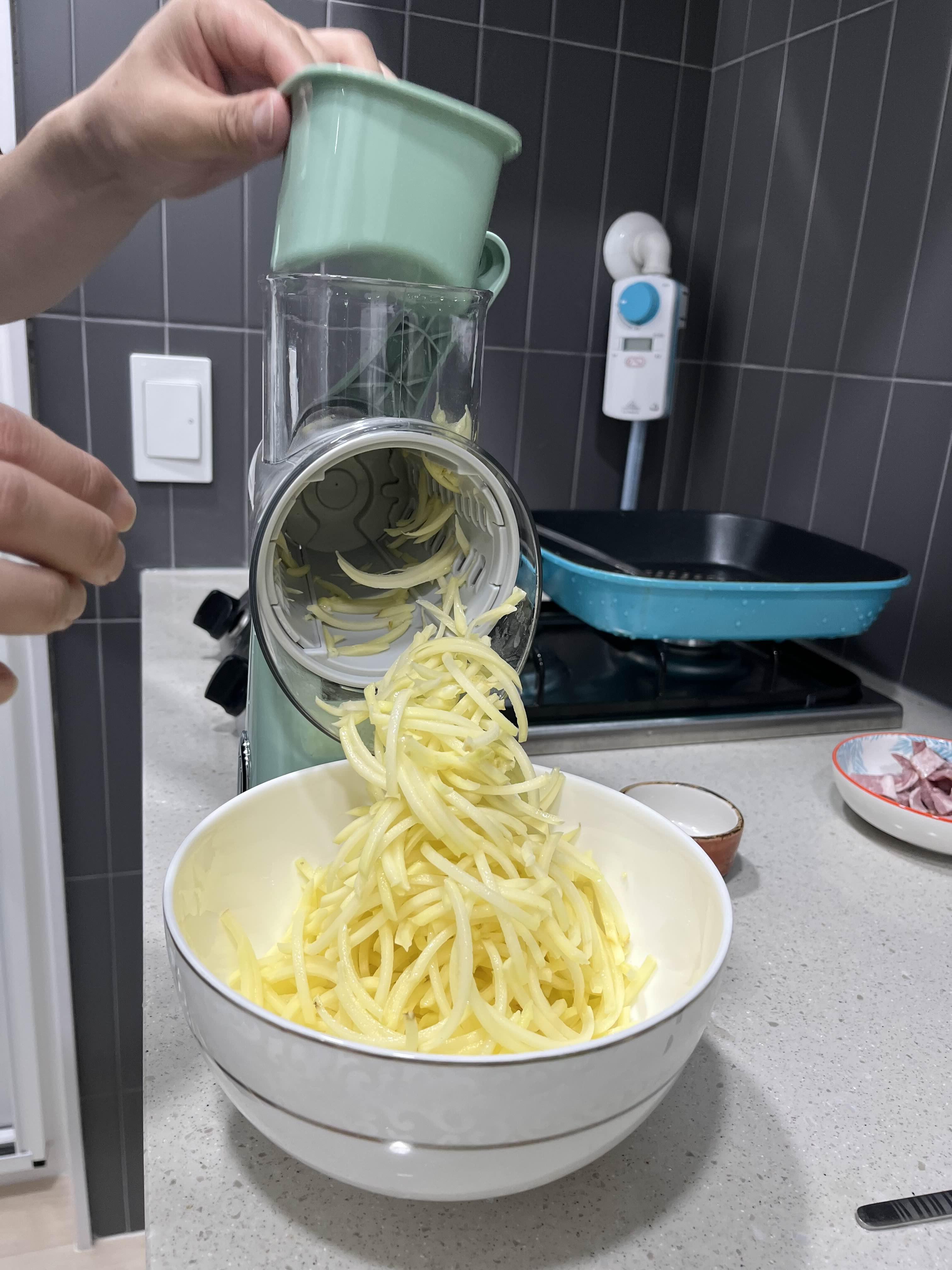 먼저 감자를 씻어서 껍질을 벗기고 채썬다. (엄마가 선물로 주신 슬라이서! 완전 꿀템임)