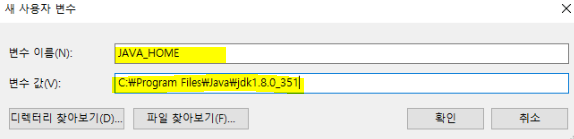 * 변수 값 : jdk 설치 경로 (C:\Program Files\Java\jdk1.8.0_351)