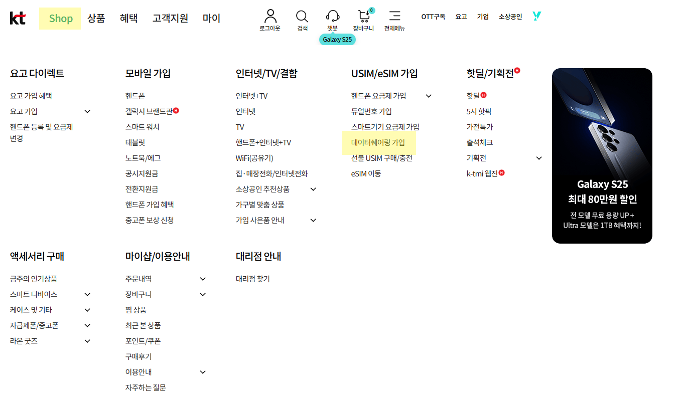 - 태블릿 데이터쉐어링 가입하기 클릭