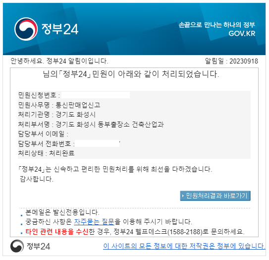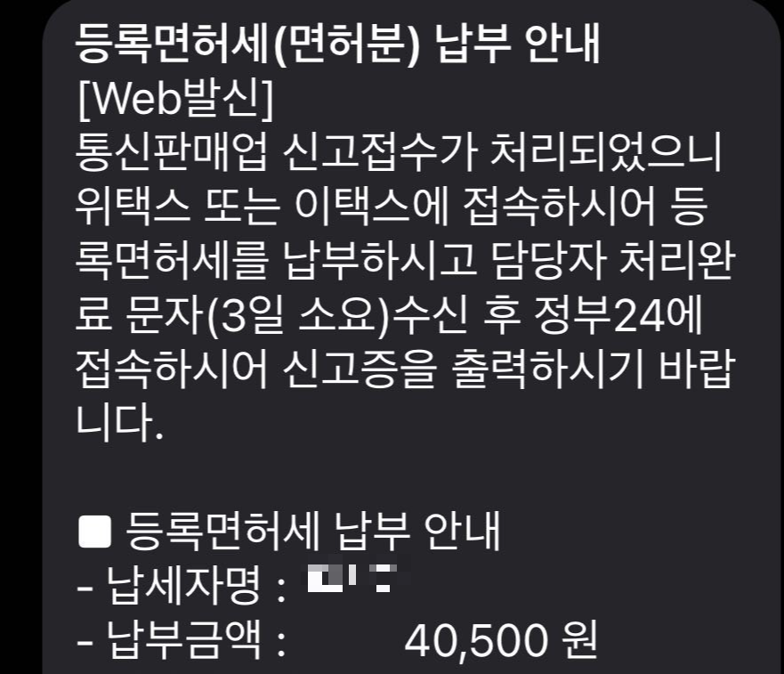 1. 통신판매업 신청 접수 문자 확인