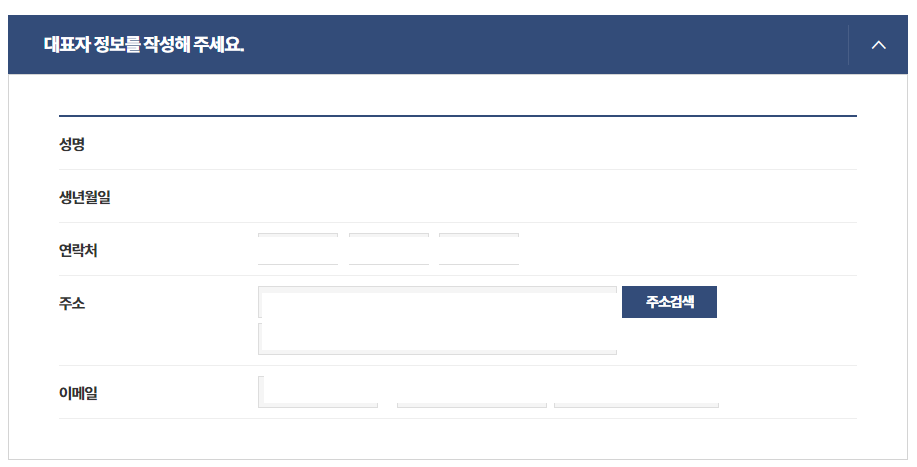 대표자 정보 입력