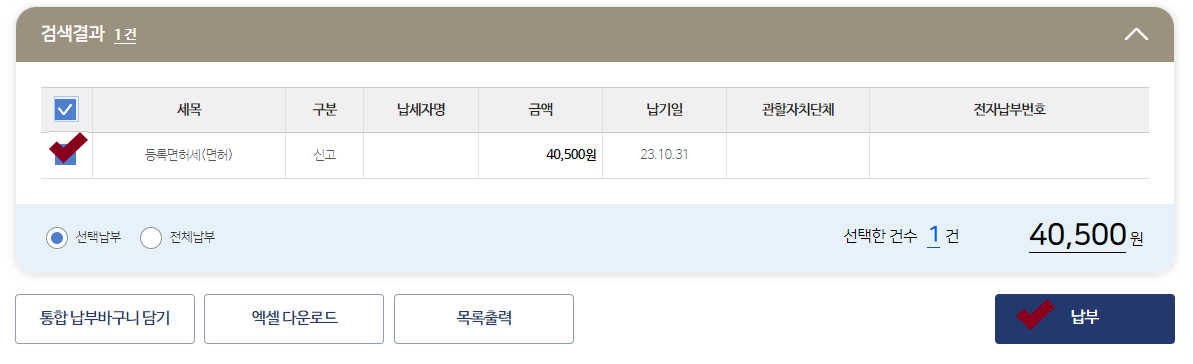4. 납부하기 클릭
