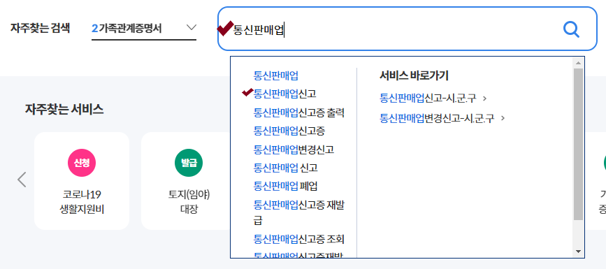 검색창에 통신판매업신고를 검색